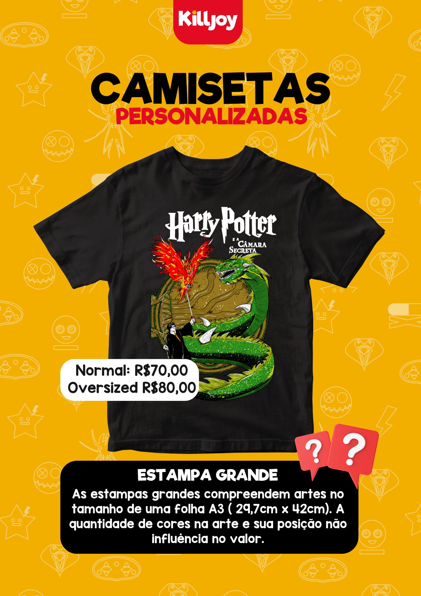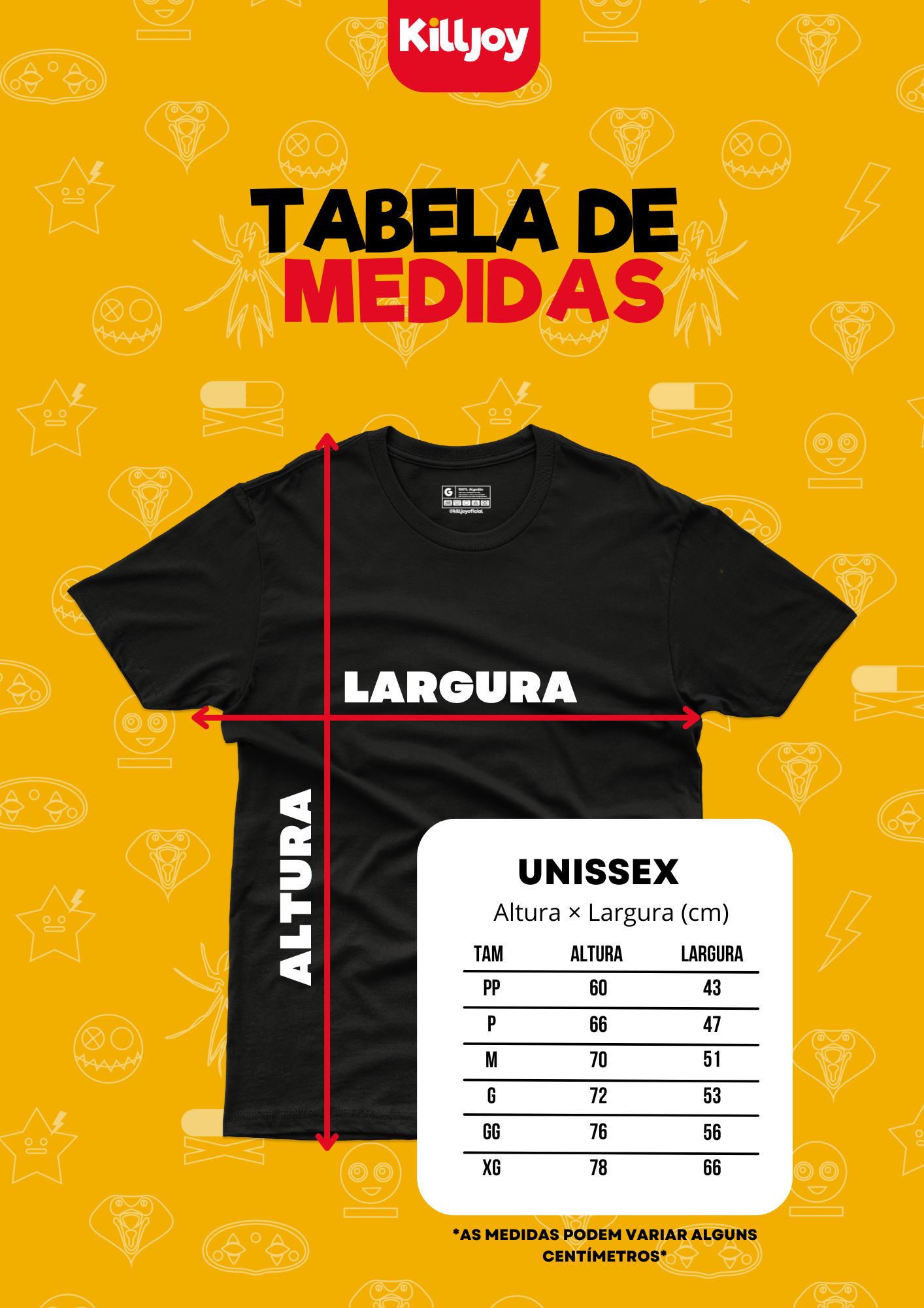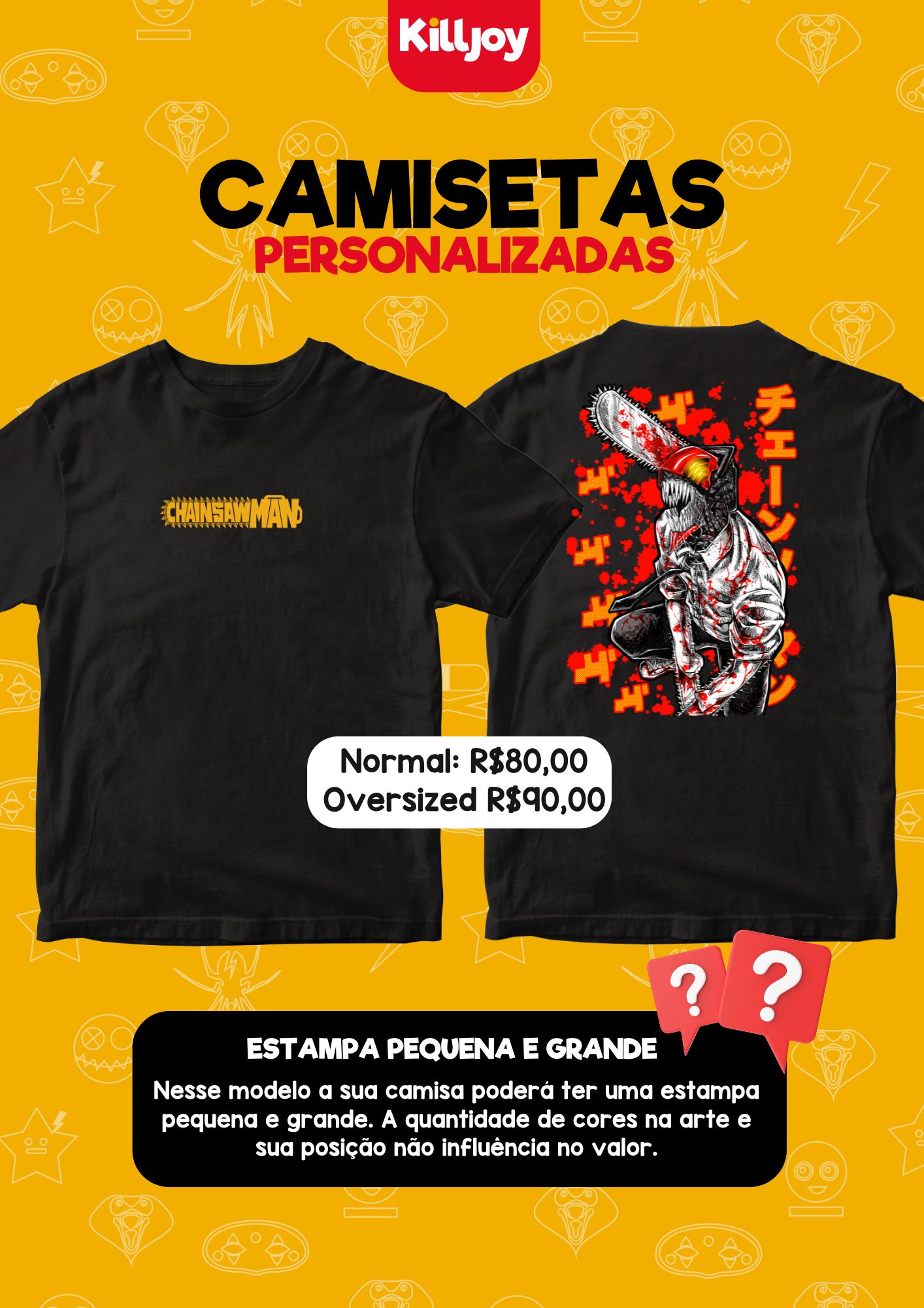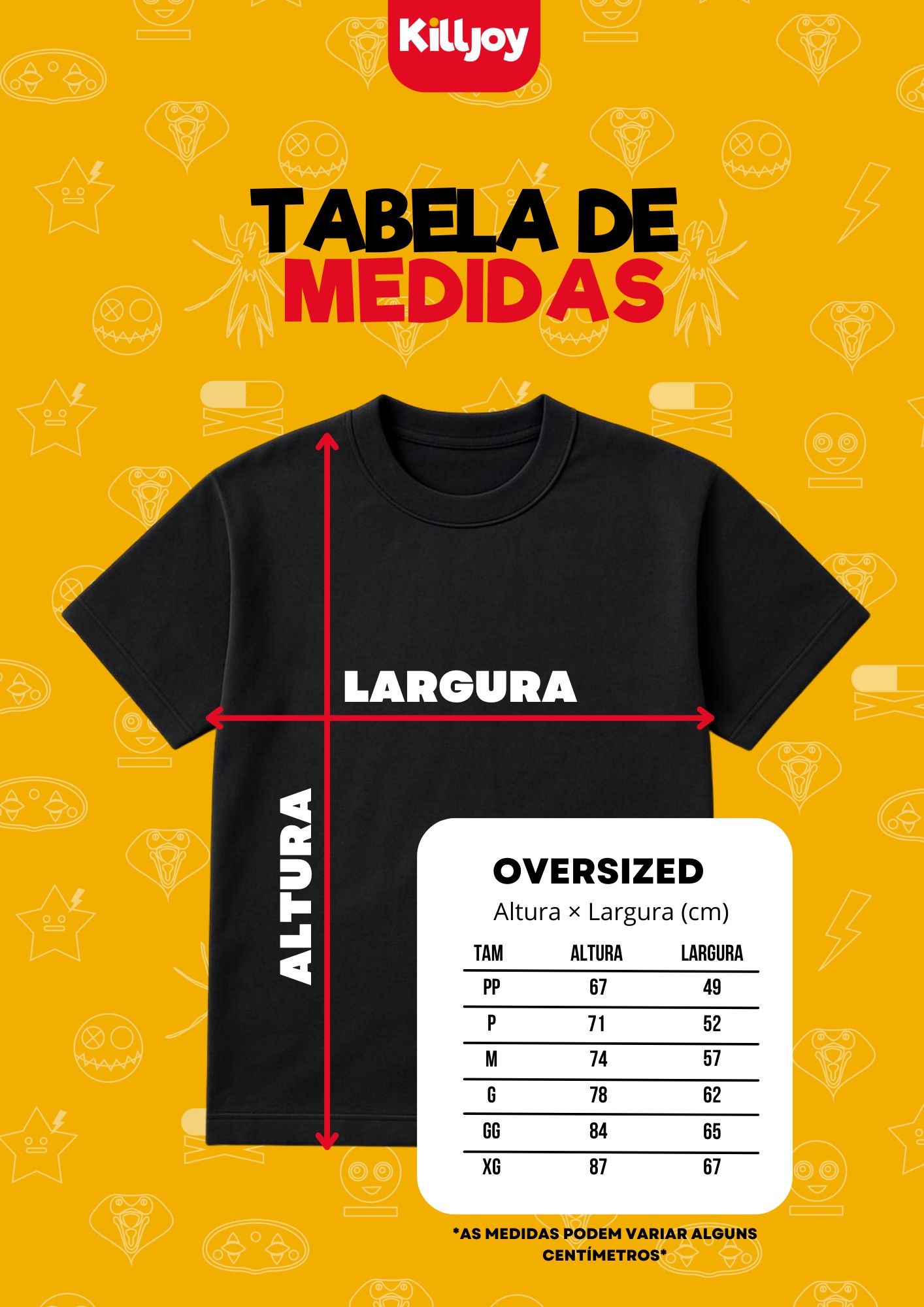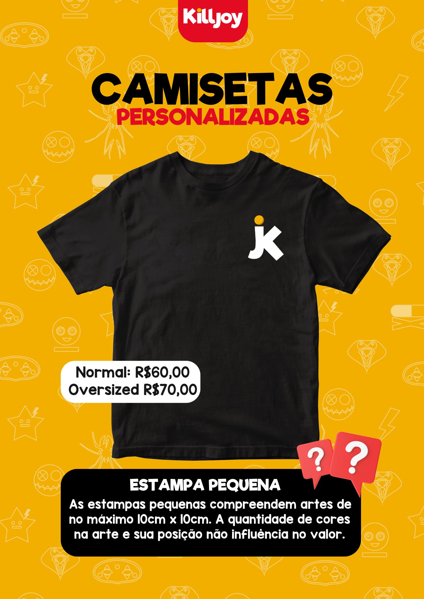 Nossas camisas Killjoy são 100% algodão e possuem reforço de ombro a ombro, temos na modelagem normal e oversized e a personalização é feita por DTF.
